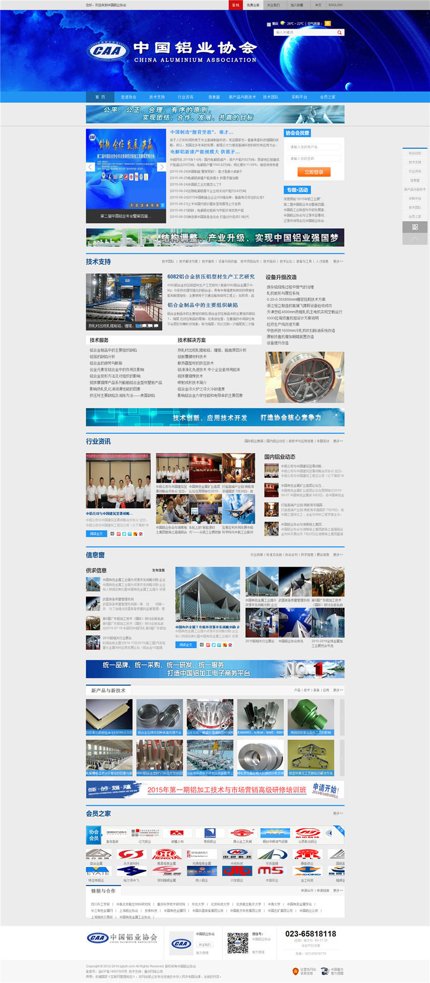 Project Description 中国铝业协会是由中国国内主要从事铝合金铸造、板、带、箔、管、棒、型材、锻件等企业组成的行业协会组织,协会由国内具有一定规模和影响力的企业发起,已有三百多家会员企业,目前还有很多企业踊跃希望加入,协会现有会员企业年销售额1000多亿元人民币,协会会员企业分布在国内华东、华南、西南、环渤海、东北、胶东半岛等中国经济活跃地区;产品涵盖航空航天、兵器装... Official website address 涪陵http://www.caa2014.com I want to share